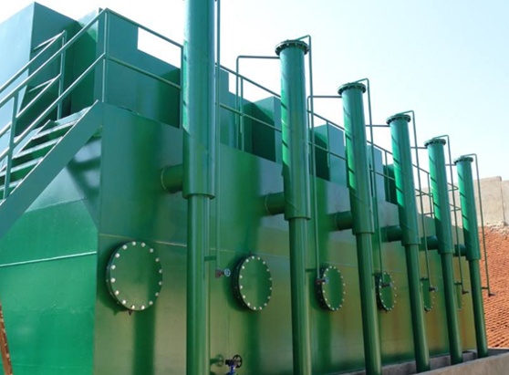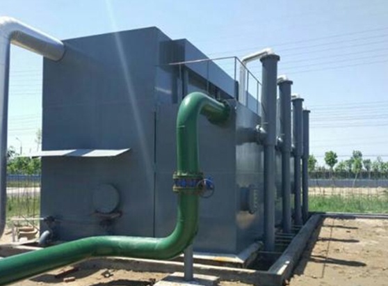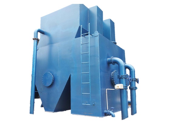 絮凝沉淀過濾一體化污水處理器及其處理污水的方法,包括絮凝區(qū)、混凝區(qū)、沉淀池、過濾器;混凝區(qū)和沉淀池在同一個(gè)密閉的箱體中;混凝區(qū)分成三倉,前兩倉的隔板的中部轉(zhuǎn)動(dòng)安裝有攪拌槳,混凝區(qū)的底部外側(cè)壁開口安裝一個(gè)原水進(jìn)口;混凝區(qū)后倉的上部與頂板間形成通道,其外側(cè)與沉淀池間形成一個(gè)緩沖區(qū),緩沖區(qū)的下端與沉淀區(qū)連通;沉淀區(qū)的下部形成斗形,中上部安裝蜂窩斜管,蜂窩斜管上方是出水堰,箱體外側(cè)安裝集水槽與出水堰連通,集水槽底部有出水口;在混凝區(qū)的下方安裝過濾槽罐和吸附槽罐;兩槽罐內(nèi)腔間由連通管連通;用管道把集水槽底部的出水口與過濾槽罐進(jìn)口連通。具有沉淀時(shí)間短,占地面積小,耐沖擊負(fù)荷能力高,運(yùn)行穩(wěn)定等特點(diǎn)。