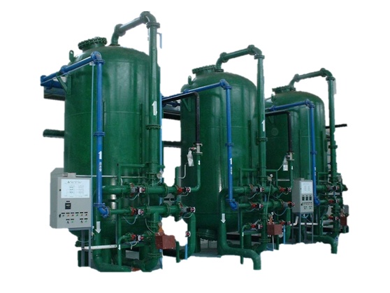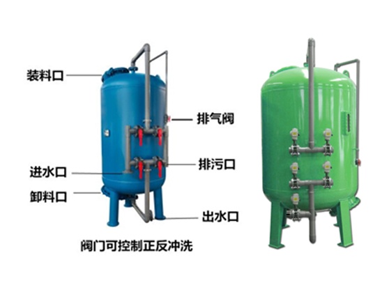 設(shè)備是壓力式的,其原理是當(dāng)原水自上而下通過濾料時,水中懸浮物由于吸附和機械阻流作用被濾層表面截留下來;當(dāng)水流進濾層中間時,由于濾料層中的砂粒排列的更緊密,使水中微粒有更多的機會與砂粒碰撞,于是水中凝絮物、懸浮物和砂粒表面相互粘附,水中雜質(zhì)截留在濾料層中,從而得到澄清的水質(zhì)。經(jīng)過濾后的出水懸浮物可在5毫克/升以下。